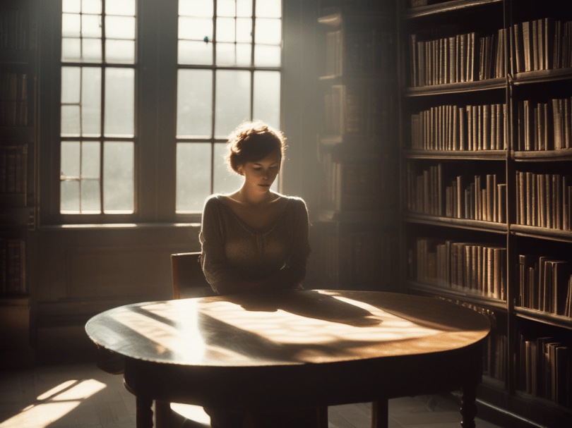 The sun shone brightly outside, bright rays passing through the glass windows before dappling on the small table in front of Nicole. She was grateful that she had chosen to sit just short of the reach of the sun’s beams, using the darkened spaces of the spacious library to help stay cool. Despite picking a white summer dress for the day, Nicole still resented the fact that women had to wear such heavy clothing. “I would rather be running naked through the woods with Alice, while hung men chased us,” she thought to herself before remembering where she was.